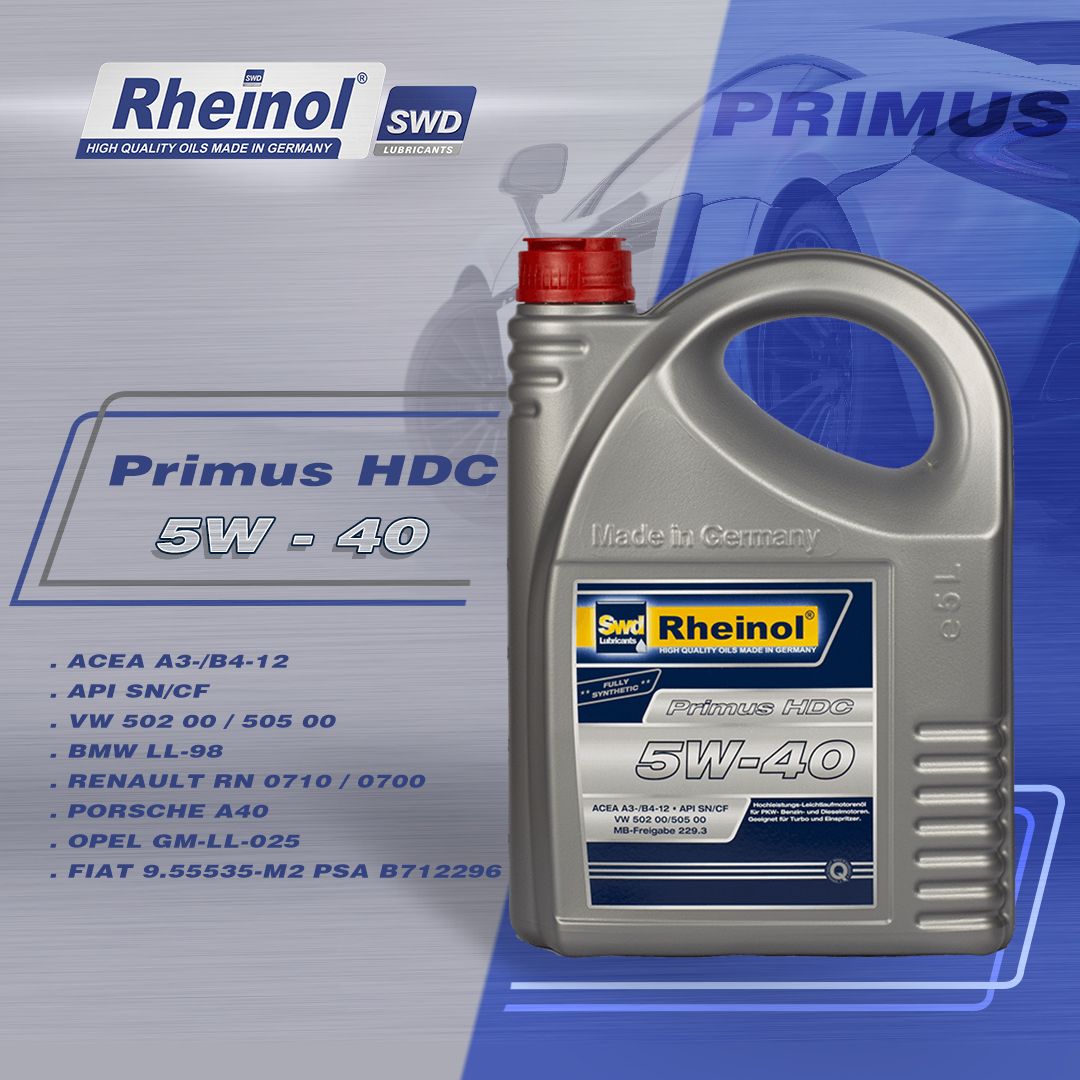 Swd Rheinol Primus HDC SAE 5W-40 là một loại dầu ma sát thấp có hiệu suất cao, được sản xuất chuyên dụng cho tất cả các động cơ xăng và diesel của xe ô tô có được sử dụng để hệ thống phun xăng và động cơ tăng áp.